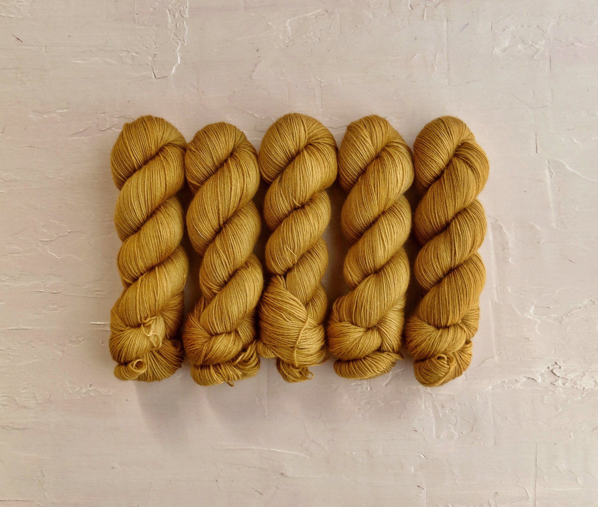 Las madejas de fibras teñidas a mano podrían tener ligeras variaciones por la naturaleza del proceso de teñido artesanal. Recomiendo comprar suficientes madejas del mismo lote para el mismo proyecto y si te gustan los tonos más uniformes puedes alternarlas de tanto en tanto.
