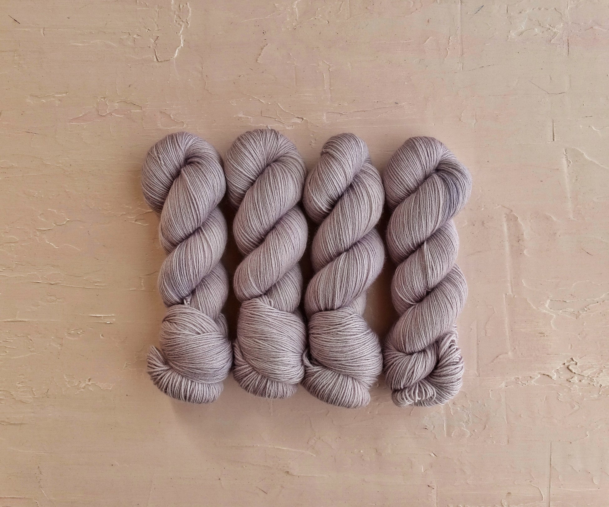 Las madejas de fibras teñidas a mano podrían tener ligeras variaciones por la naturaleza del proceso de teñido artesanal. Recomiendo comprar suficientes madejas del mismo lote para el mismo proyecto y si te gustan los tonos más uniformes puedes alternarlas de tanto en tanto.