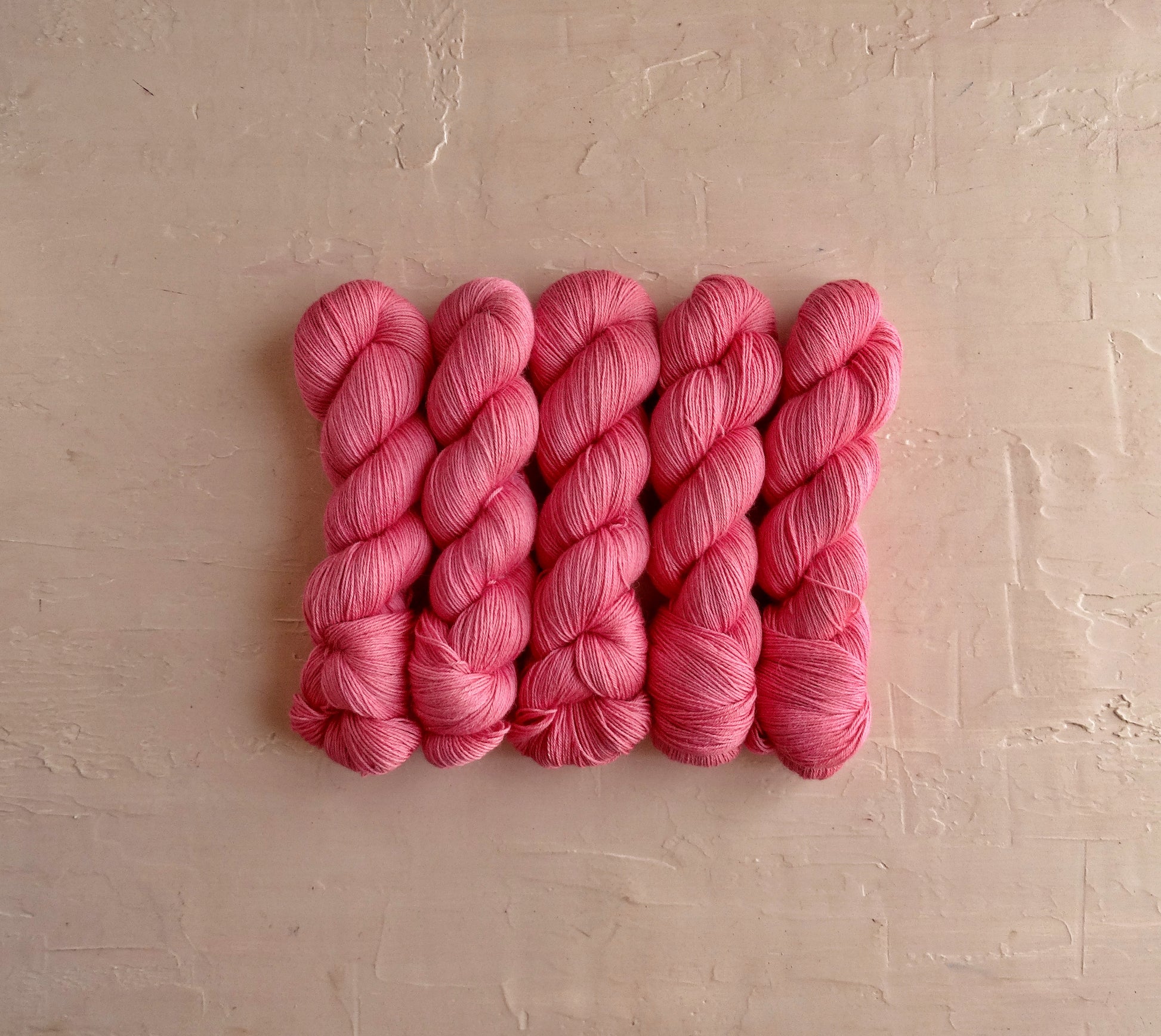 Las madejas de fibras teñidas a mano podrían tener ligeras variaciones por la naturaleza del proceso de teñido artesanal. Recomiendo comprar suficientes madejas del mismo lote para el mismo proyecto y si te gustan los tonos más uniformes puedes alternarlas de tanto en tanto.