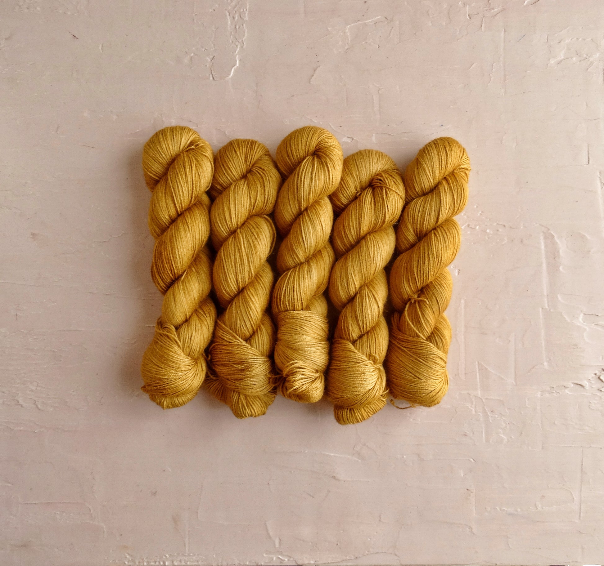 Las madejas de fibras teñidas a mano podrían tener ligeras variaciones por la naturaleza del proceso de teñido artesanal. Recomiendo comprar suficientes madejas del mismo lote para el mismo proyecto y si te gustan los tonos más uniformes puedes alternarlas de tanto en tanto.